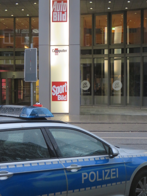 Nun kommen wir zu den besonderen Bildern. Ein wiederkehrendes ist, wie der Polizeibeamte oder die Polizeibeamtin, dem Täter beim Einstieg in das Polizeifahrzeug, für mich immer noch Peterwagen, in der Weise hilft, dass er ihm oder ihr auf den Kopf drückt, damit er oder sie sich nicht den Kopf an der Karosserie des Peterwagens stößt.
