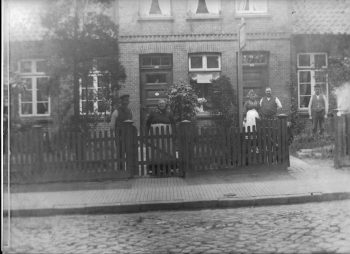 Wentorferstraße 19 – 21. v.l.n.r. Paul Schumacher, Fuhrmann, Margarethe Schumacher, Johanna Schultz, Richard Schultz, Milchhändler, Vater von Richard Schultz . 1918 (?)