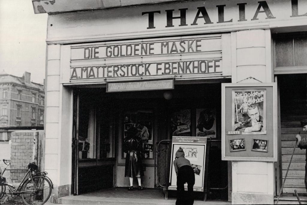 Die goldene Maske im Thalia Kino Grindelallee 116 in Hamburg . Foto von John Holler (1957)